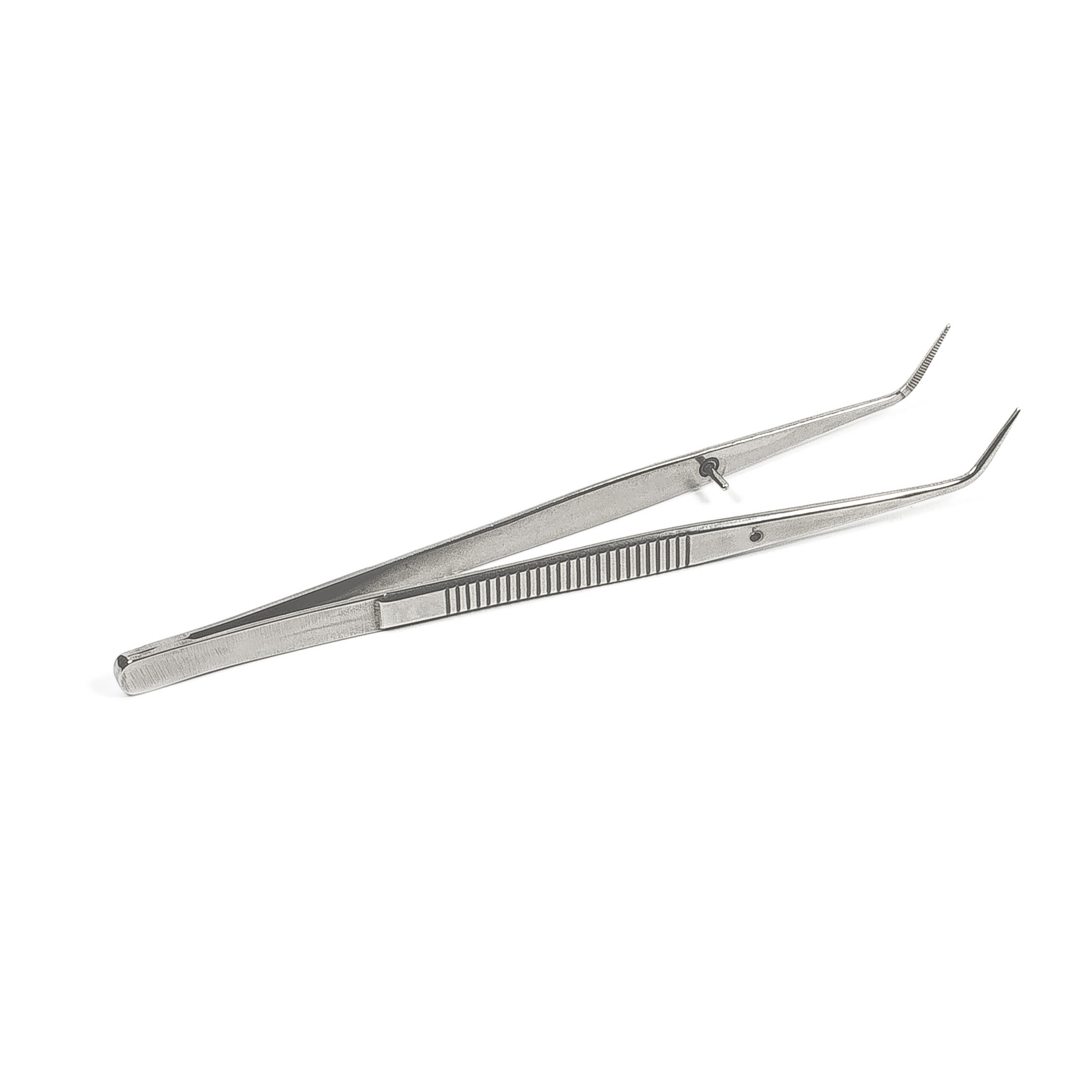 Насечка для надежного захвата: Специальные насечки на захватах пинцета обеспечивают надежное удержание зубных элементов и материалов, что особенно важно при работе с мелкими и деликатными компонентами.
